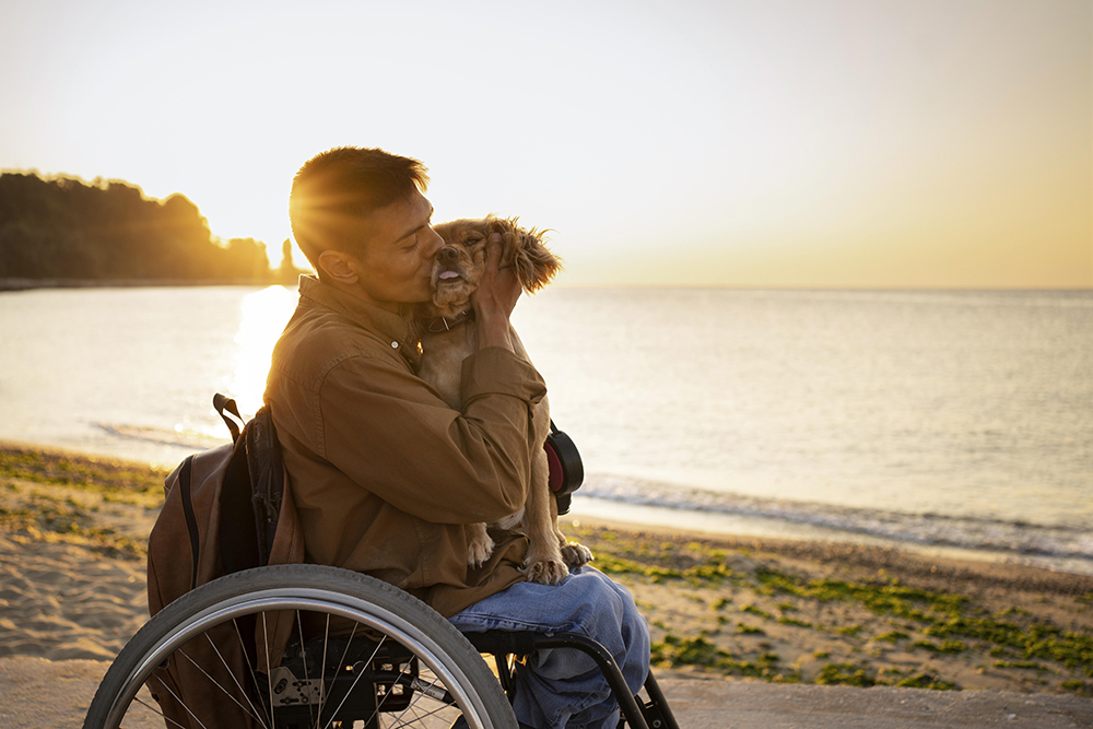 Dankzij zijn compacte rolstoel kan Bram er weer op uit trekken samen met zijn hond Balou.